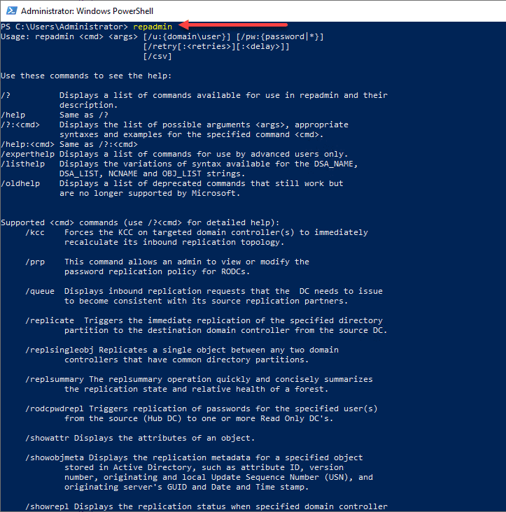 Repadmin is another command-line tool for checking replication, managing replication partners, and it can be used in diagnosing replication errors, and issues among other things.