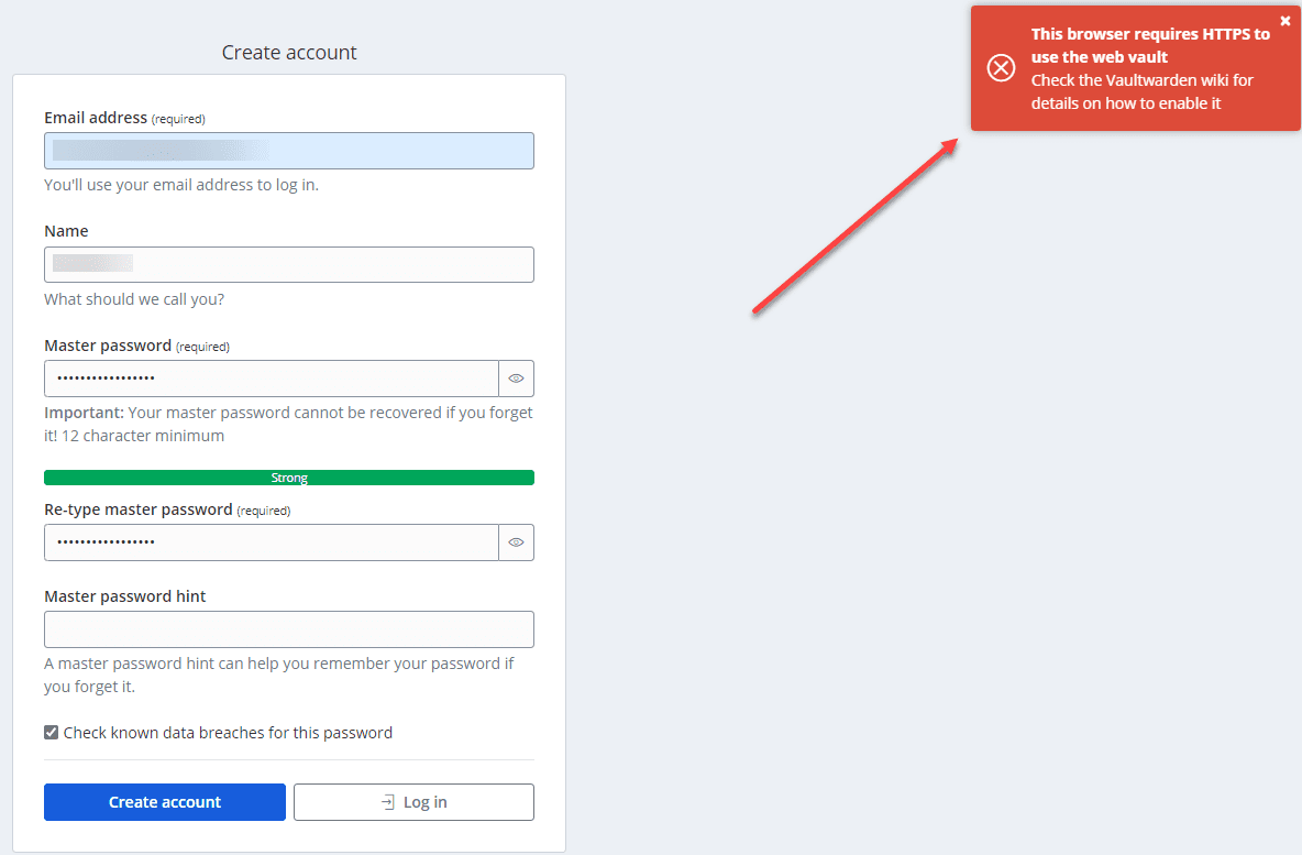 If you aren’t accessing Vaultwarden Server using HTTPS certificates, you will see this error: