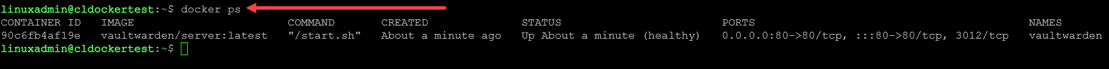 Run the sudo docker-compose up -d command to deploy the Vaultwarden instance.