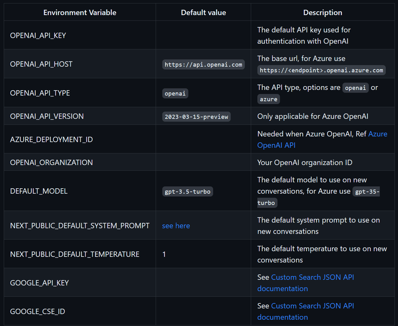 You can use the following environment variables when spinning up the ChatGPT Chatbot user interface: