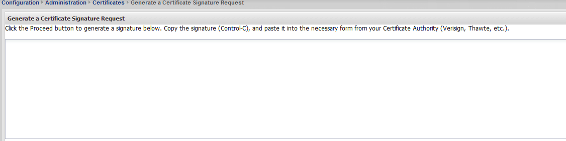 Once you have your certificate request processed, you will simply click on the “Import a Signed Certificate” button in the Certificates tab of Administration and paste your signed certificate in here.