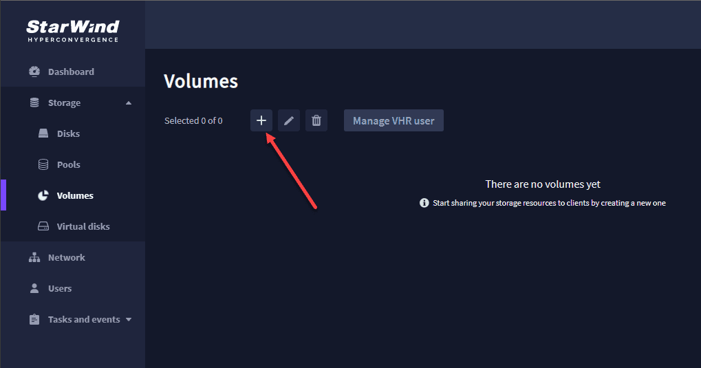 One of the web interface’s new features is adding Volumes to the configuration panel. The workflow is exactly as laid out in the web interface from top to bottom on the left-hand menu regarding the order of operations. First, you need to provision a disk, then a virtual storage pool, then a volume, and then you can create a virtual disk to attach to your hosts.