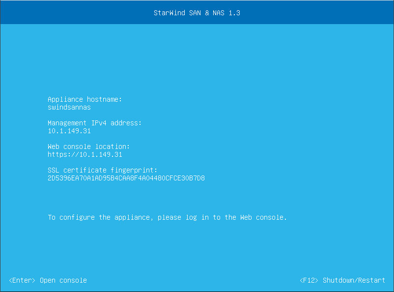 Deploying the StarWind SAN & NAS appliance