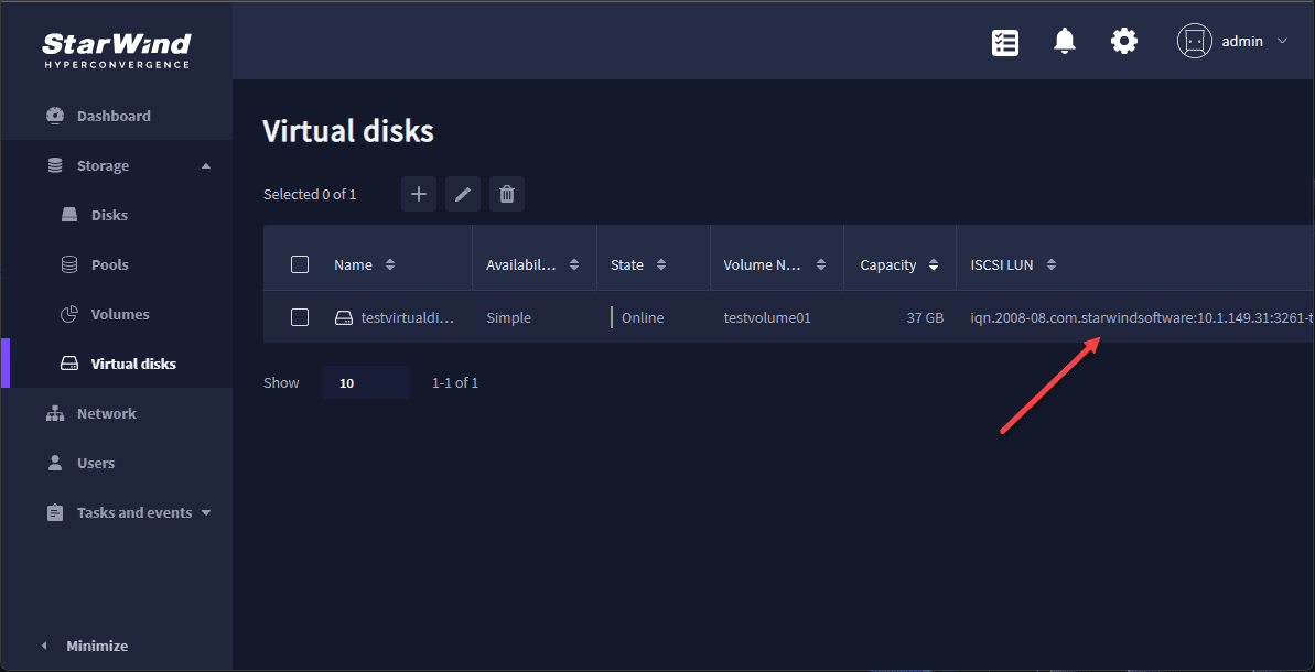 StarWind SAN and NAS makes it easy to add a new virtual disk to your hypervisor host, such as VMware ESXi, by automatically creating a new iSCSI target when you create a new virtual disk.
