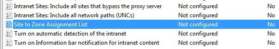 A typical need for group policy when it comes to Internet Explorer is adding websites to different zones which determines how IE handles the webpage either locking things down or allowing certain things to run such as Active X, etc. A great key to look at in Group Policy is the “Site to Zone Assignment List” GP setting found under either your User Configuration or under your Computer Configuration settings in GP.