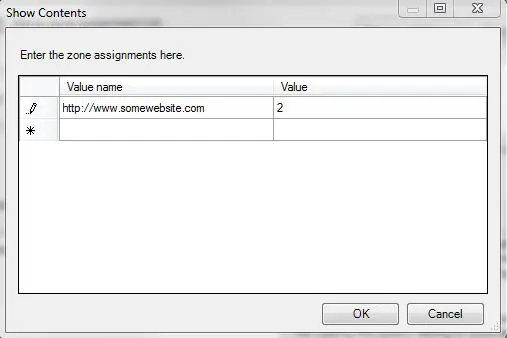 Value – A number indicating the zone with which this site should be associated for security settings. The Internet Explorer zones described above are 1-4.