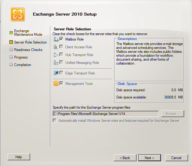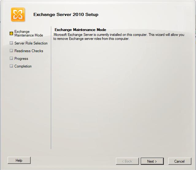 - The first screen basically tells you that you are going to enter Exchange 2010 “Maintenance Mode”