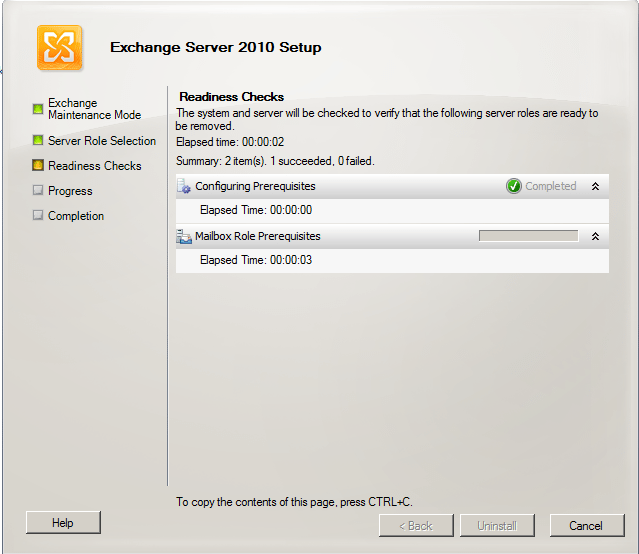 - Exchange 2010 Setup will perform “Readiness Checks” as it does when installing