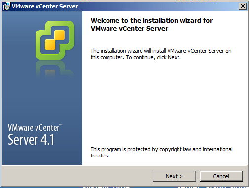 Installing vCenter Server 4.1 update 1 is a fairly straightforward install. In preparation for this demo, we have built a Windows 2008 R2 64 bit server with all Windows updates, downloaded the ISO for vCenter Server 4.1 update 1 (which is roughly 2.3GB) and burned this to our media. So simply run your DVD or mount your ISO file via the method of your choosing to get the setup rolling.