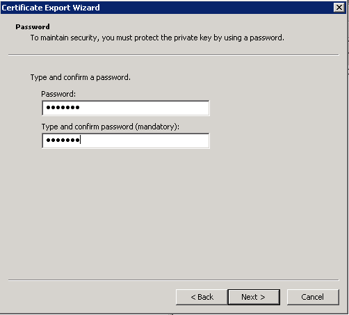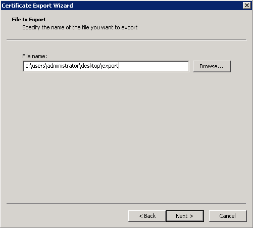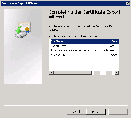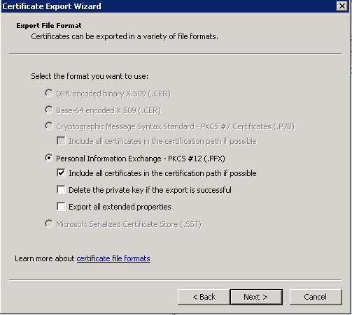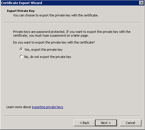 This step is important because we want to export the private key as well or the certificate won’t work: