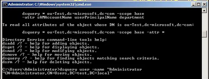 As mentioned above, one of the simple handy things that DSQUERY can do for you is locate a user or computer. The syntax is as follows: