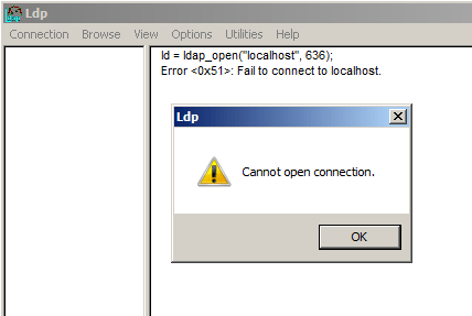 Note that above the port is closed and our domain controller is not listening for LDAPS connections.