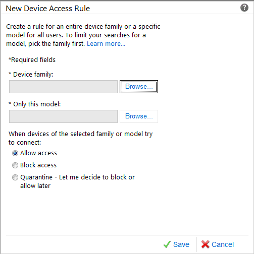 - Control which Family of devices as well as models are able to connect to the ActiveSync Service