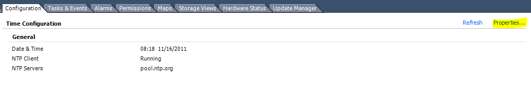 After clicking the “Time Configuration” option you will see the following….click the Properties option