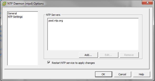 Be sure to click the “Restart NTP service to apply changes” option to make sure the settings are applied