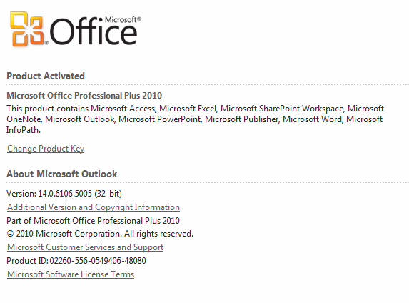 The way you can tell what version of Outlook you are running, go to the File tab, then click Help and look to the right most pane. You should see the “About Microsoft Outlook” information which will give you the Version information. If you are running anything less than version 14.0.6023.1000 then you do not have SP1 installed.