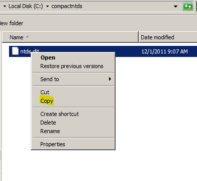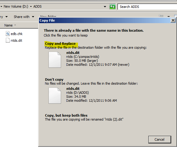 - You are told to copy your compacted file to “Location of your AD database currently”