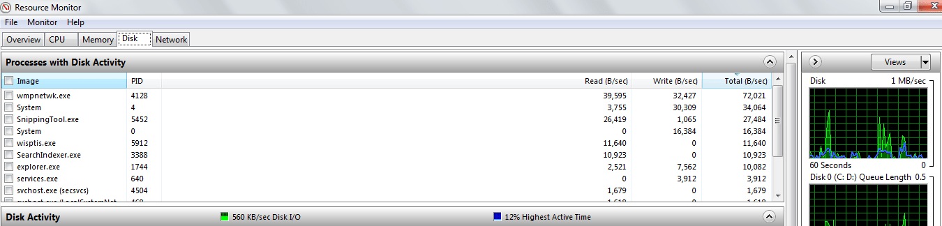 Task manager definitely has its place in providing information about services and users along with running processes and applications, however task manager doesn’t provide information about areas such as disk performance. ย Oftentimes, disk I/O problems are at the heart of performance issues. ย Being able to pinpoint what application or process is tagging your disk is often the key to troubleshooting performance issues.