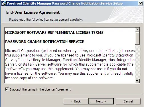 One of the pieces to setting up the infrastructure to send password changes to a synchronization server like Forefront Identity Manager 2010 is installing the Password Change Notification Service on your domain controller(s). ย This service “listens” for password changes and then sends them over to the FIM2010 server which is running OLSYNC so it can be processed and sent on to its destination. ย One of the most commmon implementations of this would be with a cloud email solution such as Exchange Online or Live@Edu for educational insitutions. ย This service effectively allows the password change to be sent from the on premises Active Directory domain to the online Exchange organization so that the user’s password is the same both on premises and in the hosted environment. ย Otherwise this would be a nightmare for an administrator to keep this synchronized manually.