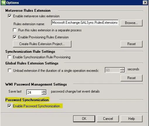 The following presumes you have an already functioning FIM2010 server with management agents correctly installed and configured for your environment. ย One detail that we want to show via screenshot though that is easily missed is under the Toolsย and Optionsย menu in FIM2010. ย You need to make sure you have the Password Synchronization – Enable Password Synchronization flag set.