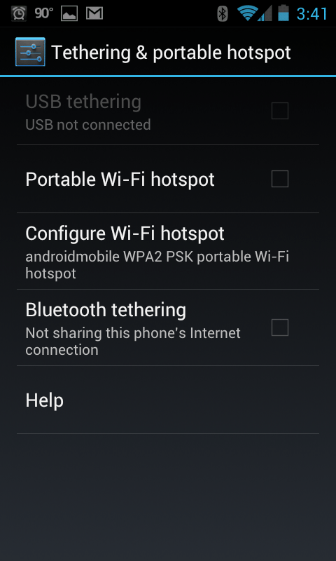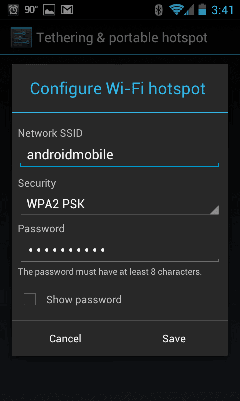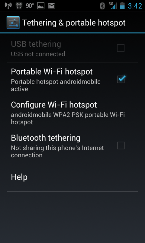 After we setup the SSID and security/authentication mechanism, we then simply check the Portable Wi-Fi hotspotย option to turn the hotspot service on.