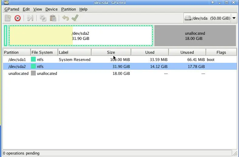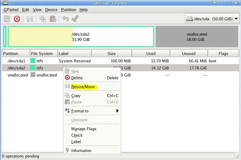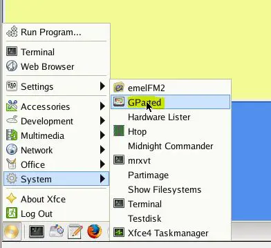 After booting into the linux GUI, navigate to System >> GParted