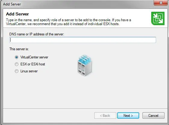 As you can see below, you can either enter VirtualCenter Server (vSphere now), ESX or ESXi host, or Linux Server