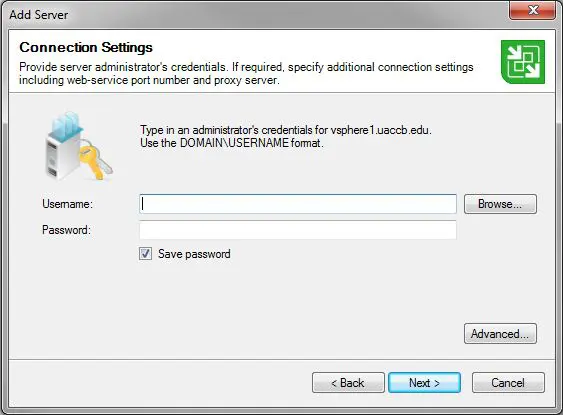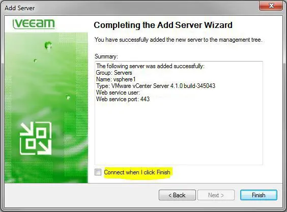 After installing Veeam, you will need to add your ESX/ESXi or vSphere server to the Veeam management console.