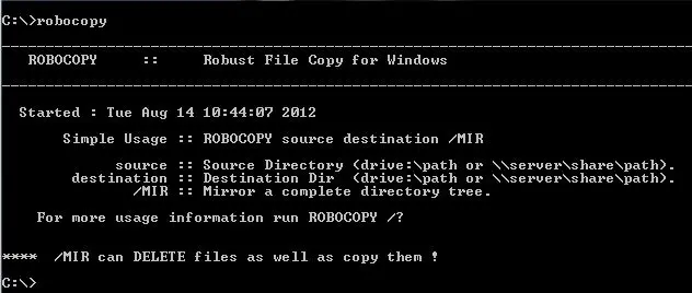 As you can see in the command above you tell robocopy the source drive first, then the destination drive, THEN the file you want to copy. ย The /V /TEE switches add the functionality of the command that we need to be able to see the progress percentage indicator that will help us see where we are in the copy process.