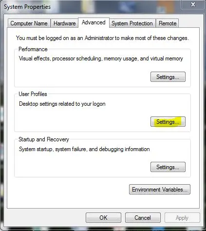 - Typing in sysdm.cpl at a run menu and then clicking the Advanced tab