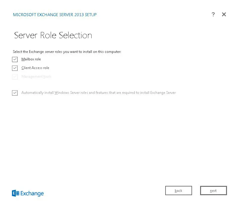 Here you select the server roles. ย You will notice a much more streamlined server role selection. ย No more “Hub transport” role as this is combined into the “Client Access” Role.