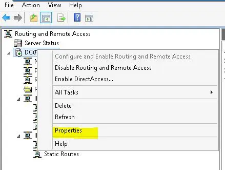 - After the service is configured, you will see the green “up arrow” symbol which shows the RRAS server is fully operational and is ready to finish out the configuration
