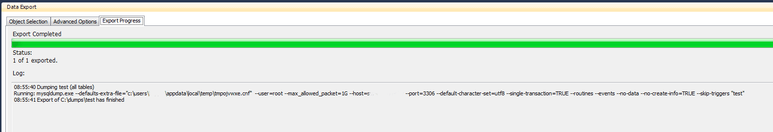 Below is theย Export Progressย screen which essentially lets you see the progress of your DB backup/export.