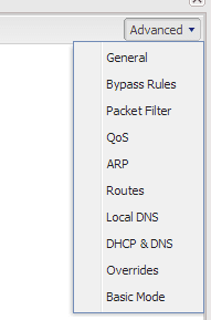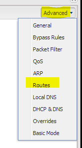 - This will take you to a page with the interfaces listed. All the way in the top right after turning on Advanced Mode you will see the Advanced drop down menu. Click Routes