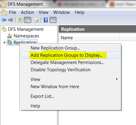 Nextย – Right click theย Replicationย node and selectย Add Replication Groups to Display…