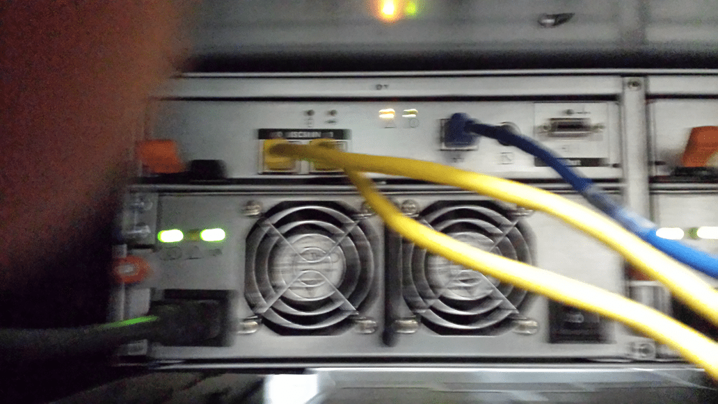 I apologize below, but the below pic was blurry as I had to snap this inside a server rack.ย It is hard to tell but after reseating the RAID module, there are no activity lights on network ports because we still haven’t brought the controller back online.