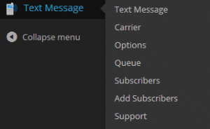 With the above requirements stated above, we found a plugin in the repository which fit the above. ย That plugin is WordPress Text Message. ย After activating the plugin you will have a menu in your wordpress dashboard: