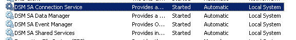 Let’s start with the basics. Â I am going to detail some troubleshooting steps of Dell OME connecting via the OMSA software installed on servers. Â I had a hard time finding from Dell what the names of the services that get installed are. Â These may be detailed in a document, but I was not able to find those. Â However, for those that don’t already know, the Windows services that get installed are pictured below: