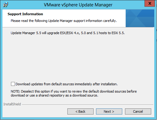 Depending on how you install the Update Manager component, you may want to separate off the Update Manager Download Service UMDS as an option module of Update Manager onto another VM if you segment network connectivity to your vCenter Server. ย Keep the following things in mind about UMDS: