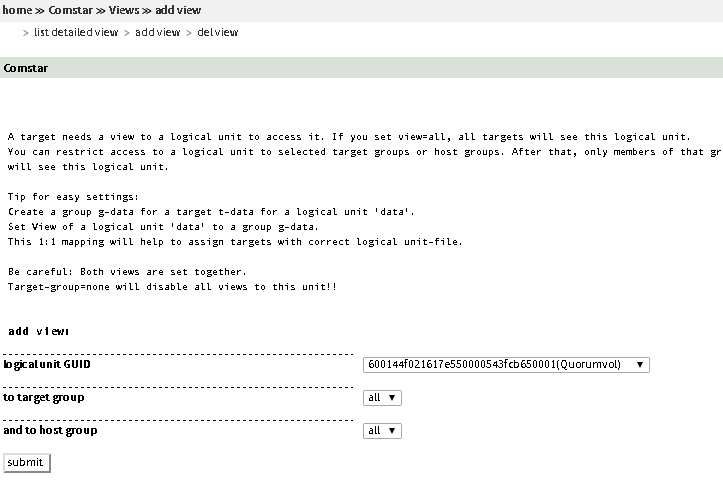 - We select the logical unit GUID, and I set the target group and host group to all, since this is in a test isolated network