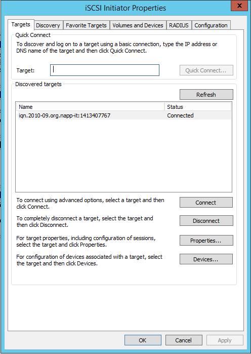 - On our Windows 2012 R2 servers, we need to launch the iSCSI Initiator Properties (select yes to the message about starting the service automatically) and then enter our target. You simply enter the IP address of your napp-it server here.