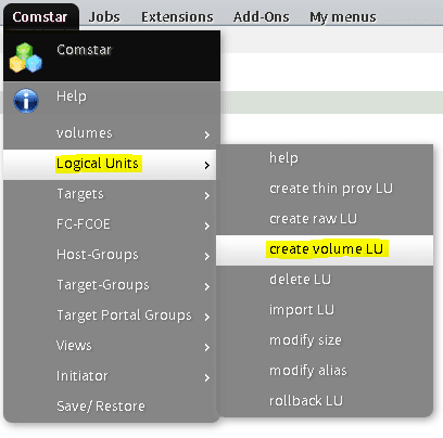 After doing the initial setup on Napp-it, setting passwords, ip address, etc, I added a couple of Hard Disks to the VM appliance for storage to assign via iSCSI. Napp-it is definitely a lot less intuitive than Openfiler, FreeNas, and others. However, below are the steps you need to follow to get a working LUN setup . Also, make sure your Comstar iscsi service shows online and is running.