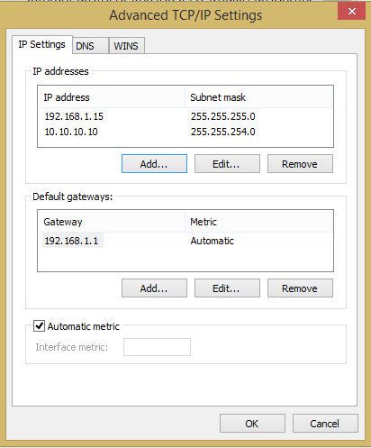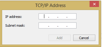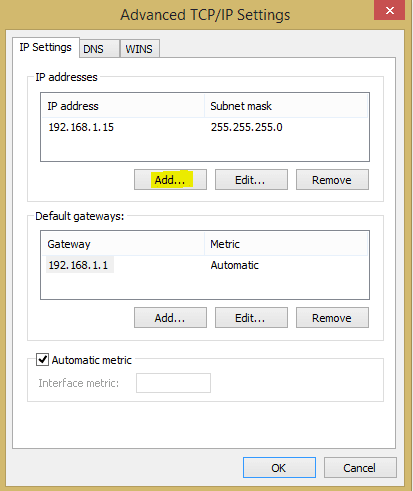 Next, we need to hit theย Add… button in the advanced TCP/IP Settings box which will allow us to specify additional IP addresses.