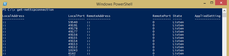 With powershell we have a whole new array of commandlets to peer inside of and control what is going on with Network connections in Windows. ย There are two commands in generalย among othersย that provide really powerful monitoring inside of Powershell and that is theย get-nettcpconnection andย get-udpendpoint. ย Take a look at the whole list of new powershell commands for monitoring and controlling TCP activity here: ย https://docs.microsoft.com