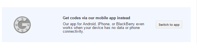 More on the above part in just a couple of screenshots. ย However, you will notice that under theย Verification Codesย tab under your 2-Step Verification settings that you will have the option toย Get codes via our mobile app instead down towards the bottom. ย Click theย Switch to app and you will be presented with aย barcode that can be scanned and then from that, you enter the verification code it generates.