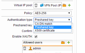 Below is a quick capture of theย Authentication type dropdown where you see you can select between CA DN match, Preshared key, and X509 certificate.
