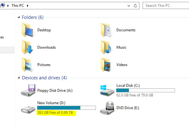 What you see below is a screen clip of the D: volume on our server before we turned on deduplication on the server. Â We have roughly 250GB free on the server on a 1TB volume.