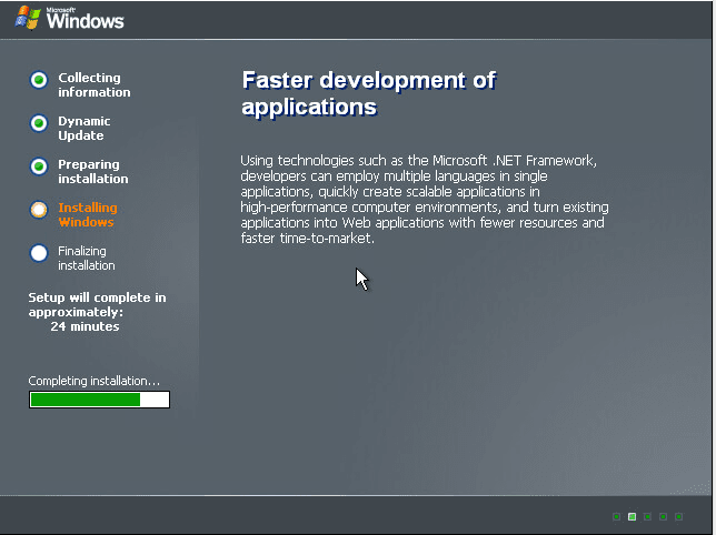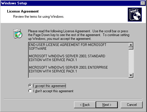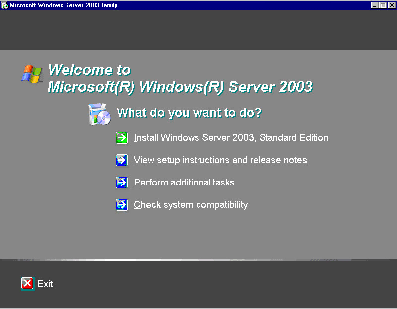 After mounting the Windows 2003 ISO in VMware, the NT box will launch the Windows 2003 Setup wizard.