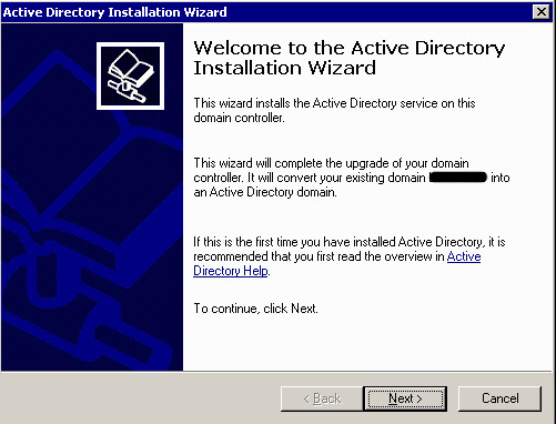After you boot your NT4 (now 2003) setup for the first time it will get to the GUI Active Directory installation wizard as it knows it is a PDC that needs upgraded to AD.