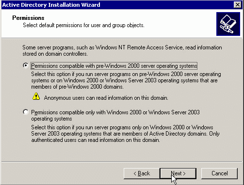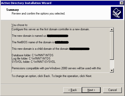 Believe it or not, there ARE still some environments out there running Windows NT domain controllers – Yes the end of life for public support from Microsoft was January 1, 2005, 10 YEARS!!!  It is hard to believe, but there really are NT 4 boxes still out there.  I had worked with a client recently who was running a Windows NT 4 domain with a PDC and a couple of BDCs.  They also had a Windows 2003 Active directory domain created in the environment and trust relationships between the two in place already.  The plan is to upgrade from Windows NT 4 to Windows 2003.  In this particular environment, management has decided to upgrade the NT domain and bring it in as a child domain of the Active Directory domain in place.  User accounts exist in the NT4 domain and computer accounts for the most part already exist in the Active Directory domain.